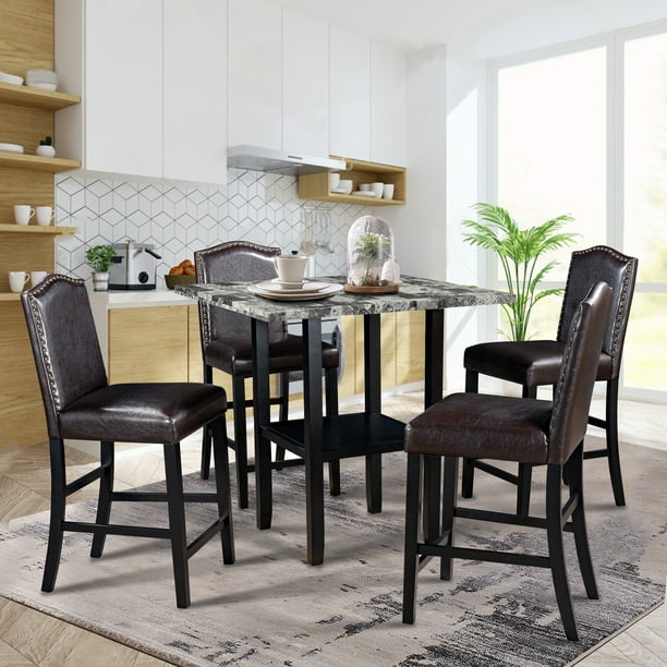 5 Piece Dining Set with Double Shelf and Matching Chairs ...