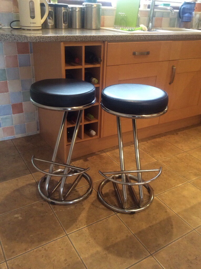 Two comfortable black kitchen/bar stools available for collection in South Glasgow due to change of kitchen styling.